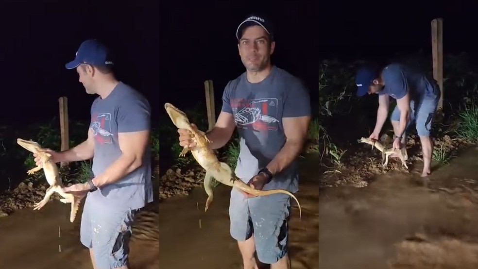 O vídeo, que já alcançou milhões de visualizações, mostra Anderson retirando o jacaré de uma poça d’água no meio da estrada e soltando o animal em segurança na vegetação ao lado (veja acima).